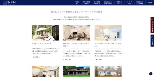 また、現在ご活用いただいているオーナー様の声をご紹介するページや別荘地周辺エリアの観光、グルメ情報なども掲載し、別荘ライフがイメージしやすいサイト構成を目指しました。