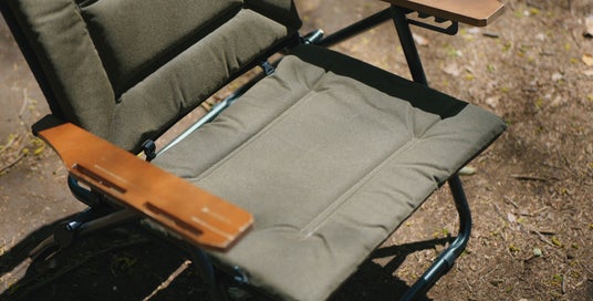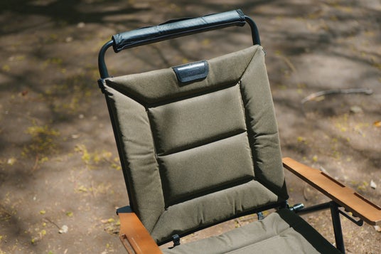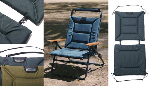 新作のチェアシートを使用すれば、焚き火の近くでも安心して使用できて、座り心地もさらに快適になります。