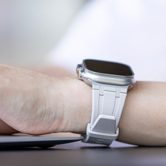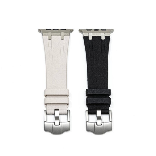 ストーン加工されたシリコン素材のバンドで、長時間着用してもべたつきにくく快適にご使用いただけます。チタニウムカラーのステンレス金具で高級感を演出します。