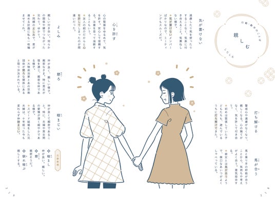 本書では、「感情のことば」「様子・状態のことば」「性格・性質のことば」「行動・動作のことば」の4カテゴリーに分けて、気持ちにまつわる和のことばを紹介しています。
