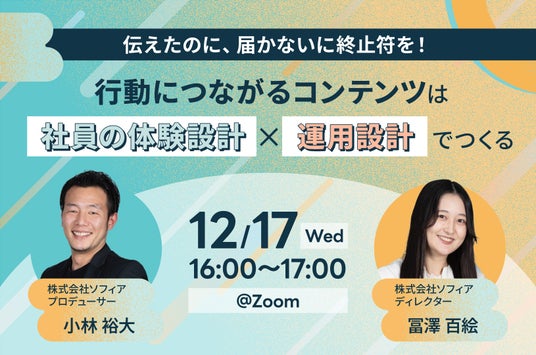 「伝えたのに、届かないに終止符を! 行動につながるコンテンツは「社員の体験設計」×「運用設計」でつくる」と題し、無料セミナーを開催します。