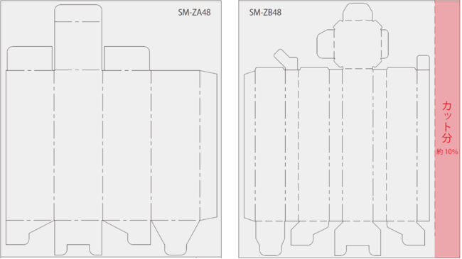 新旧 個装箱原紙の紙使用量削減イメージ