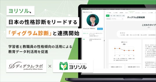 ディグラム・ラボ株式会社(本社:東京都港区、代表取締役:木原 誠太郎)は、性格診断を基にした人間の性格や行動やコミュニケーションのミエル化を支援する「ディグラム診断」を提供し、株式会社プラスアルファ・コンサルティング(本社:東京都港区、代表取締役社長:三室 克哉、証券コード:4071)が開発した統合型スクールマネジメントシステム「ヨリソル」との連携を開始することをお知らせします。