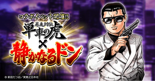 株式会社実業之日本社(本社:東京都港区、代表取締役社長:岩野裕一)は、同社が刊行する累計発行部数4,600万部を誇るアウトロー漫画『静かなるドン』(著:新田たつお)が、リアルタイム暴走族バトルゲーム『暴走列伝 単車の虎』との初めてのコラボレーションイベントを、2024年12月24日(火)より開催することをお知らせいたします。