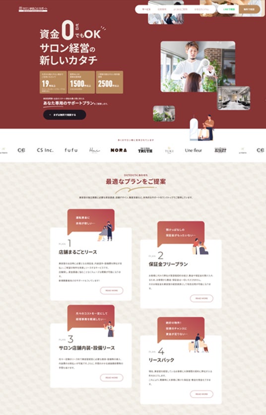 今回の改定に合わせて、「店舗まるごとリース」の内容紹介サイト(www.salonmarugoto.jp)も大幅にリニューアルしました。当社は今後も美容サロンのニーズ合致したサービスの提供や、時代やニーズに合わせた進化・改善を図ることで、美容サロンおよび美容業界の発展に貢献していく所存です。