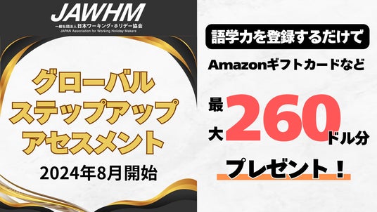 グローバル・ステップアップ・アセスメント(GSA)にエントリーすることで、語学学校を通してあなたの語学力がどれくらい向上したのかを日本ワーキングホリデー協会が記録し、その頑張りを表彰します。