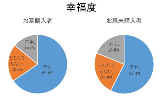 今回のアンケートでは、お墓の購入者の方が未購入者と比較して収入が高く、幸福度が高いという結果が出ました。