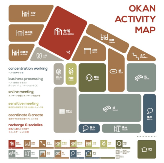「OKAN流ABW」はオフィス+自宅。目的に沿った6つのゾーンと14のスペース