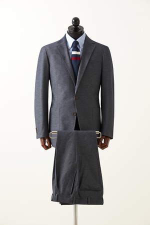 ストレッチ性抜群のデニム調生地がお洒落で着心地も抜群。ほどよい光沢で品も兼ね備えた今回のスーツモデルは、ビジネスシーンはもちろんのことオフでのコーディネートでも活躍します。 2022年横浜F・マリノス公式スーツについては、全国のGINZAグローバルスタイルにてオーダーいただけます。