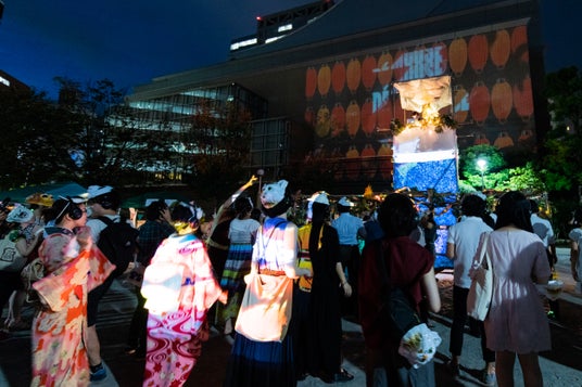【サイレントフェス「Neo盆踊り」の様子】住宅街の会場でも騒音に配慮しながら、にぎやかなお祭りが開催できます