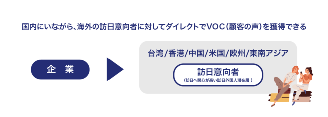 観光事業者やメーカー、越境EC事業者、広告代理店やコンサルタントなど訪日外国人に対して商品開発、マーケティング、サービスを提供する企業