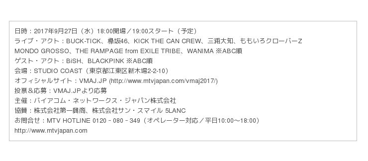 ■「MTV VMAJ 2017 -THE LIVE-」 開催概要