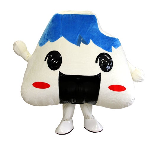 むすびんは、富士市のシンボルである「富士山」と「おむすび」をかけ合わせて生まれた食育キャラクターです。おむすびの角が食べられてしまったような形は、富士市から見える富士山の特徴である「宝永山」と火口をイメージしています。