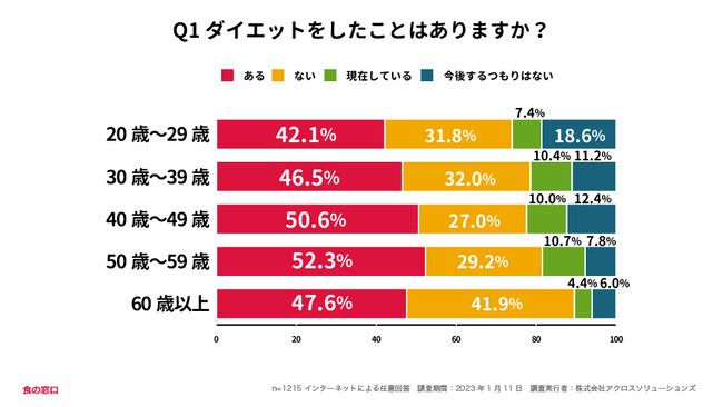 そこで、株式会社アクロスソリューションズと一般社団法人 日本唐揚協会が共同運営している食の窓口(URL:https://karaage.ne.jp/contents/ )は、20歳~60歳以上の男女1215人を対象に「ダイエットと宅配弁当に関するアンケート調査」を実施しました。