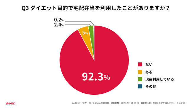 Q3 92.3%の人がダイエット目的で宅配弁当を利用したことがない。