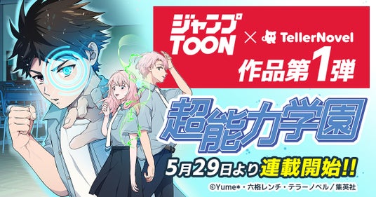 株式会社テラーノベル(本社:東京都港区、代表取締役社長:蜂谷宣人)はこの度、累計DL数760万(※)の小説投稿アプリ「テラーノベル( https://teller.jp/ )」発の人気小説『超能力学園』がタテマンガ化され、5月29日よりジャンプTOONにて連載を開始することをお知らせいたします。