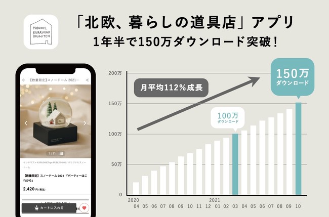 [プレスリリース]スマホアプリが1年半で150万DL突破。アプリ提供で年間売上1.7倍増の45.3億円、EC売上の6割がアプリ経由(2021/12/02)