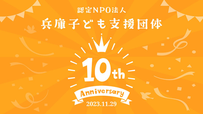 認定NPO法人兵庫子ども支援団体(所在地:兵庫県明石市、代表理事:多田実乘、以下「当法人」という)は、2023年11月29日に団体設立10周年を迎えました。10周年を記念して特設ページを公開し、これまでの歩みをご紹介しています。
