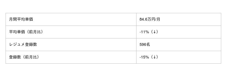 詳細は毎月発行されるレジュメ単価レポートをご確認ください。
