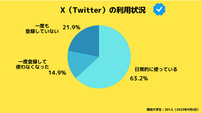 また、同じ回答形式で名称変更でこちらも話題になったX(Twitter)についても調査を行った結果、日常的に使っているZ世代は63.2%と、こちらは高い数値となった。