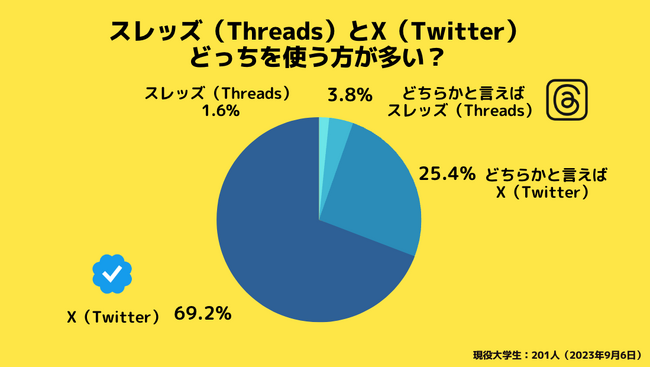 94.6%のZ世代が「スレッズ(Threads)よりもX(Twitter)を利用している」、と回答。