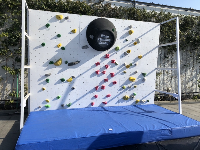 屋上に設置された高さ約2.5メートルの専用壁を登る、いま注目のボルダリングにチャレンジできます。