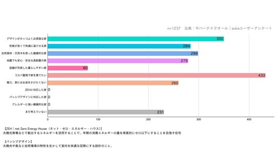 住宅購入検討者と住宅メーカーのマッチングプラットフォーム《auka(アウカ)》を運営するギバーテイクオール株式会社(本社:東京都港区、代表取締役CEO 河野清博、以下当社)は、aukaの相談フォームにおいて、エンドユーザーの家づくりに関する意向アンケートを実施しています。2024年1月から3月に行った調査の集計結果をお知らせいたします。