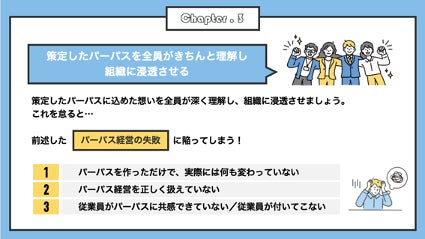 私たちの新たなパーパス、及び、ミッション・ビジョン・バリューを各部署の戦略と具体的行動指針に落とし込み、また、人事評価制度にも反映させることで、組織の更なる成長を目指します。