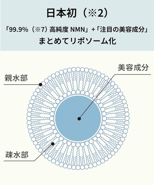 NMNをはじめ美容成分をリポソーム化したことにより浸透力が増した(※6)NMN配合美容液です。