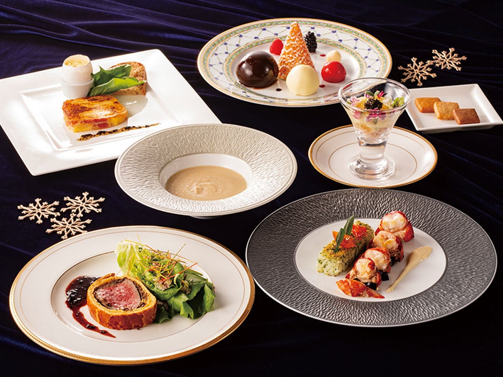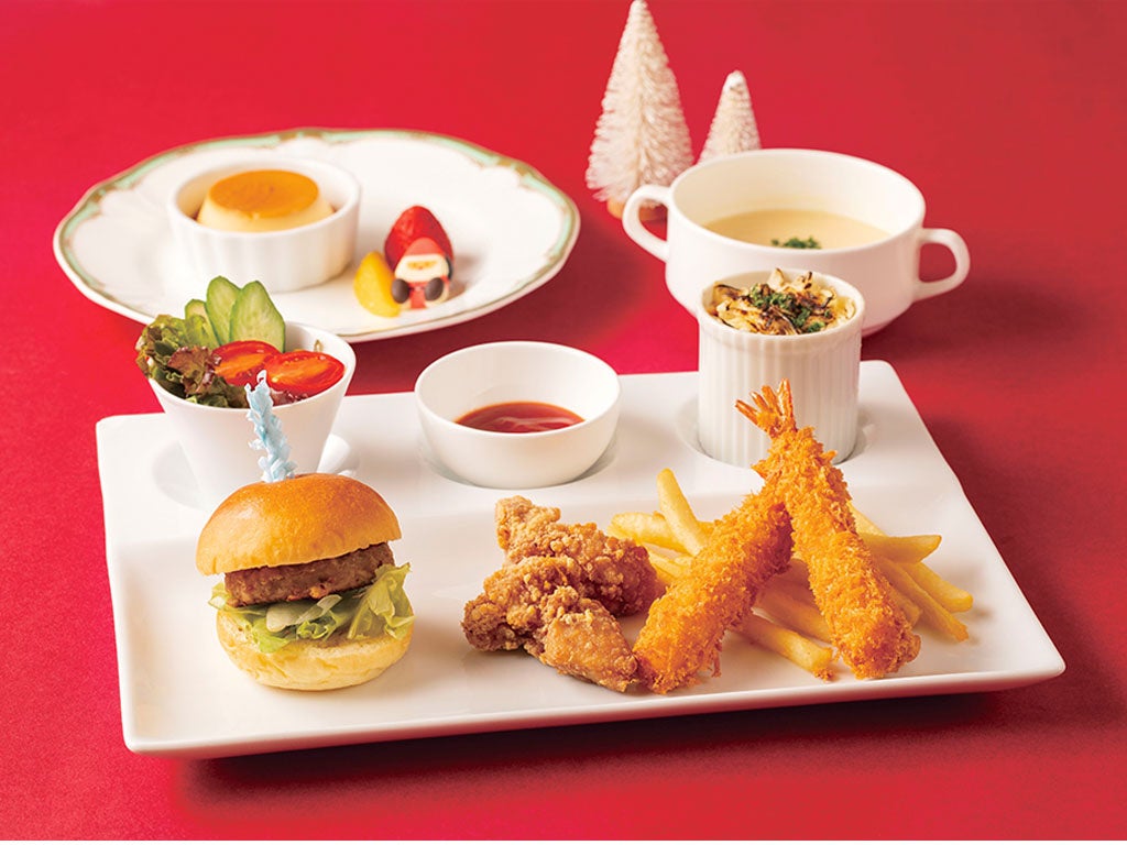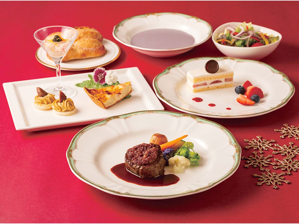 赤・緑・白の鮮やかなクリスマスカラーをベースに天井に舞う雪、夜空に輝く星の美しさに由来するシャンパンゴールドのイルミネーションや、ポインセチアの花言葉である「幸運を祈る」気持ちに寄り添うようなあたたかみのあるキャンドルライトにより華やかなきらめきに包まれます。