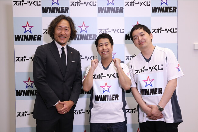 また、お二人が応援隊長を務める1試合予想くじ「WINNER」についても紹介。「今日の熱い一戦、僕たちがWEB CMに出させてもらってるWINNERでより熱い応援をしていただきたいなって思ってます!スマホで試合開始10分前まで買えますからね!」と、スタメン発表を確認してからでも買える「WINNER」の魅力について語りました。