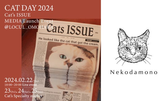 ネコの日(2月22日)に合わせて、 2024年2月23日(金)~25日(日)に、東急プラザ 表参道原宿5Fに位置するコミュニティ型商店街「LOCUL」にて開催。ブランドや個人作家が手がけた「ネコとの暮らし」を彩る商品やサービスと出会えるマーケットコーナーや、「Cat’s ISSUE」と親交の深いアーティストの一点もの作品も展示・販売、スペシャルライブイベントやワークショップも予定されています。