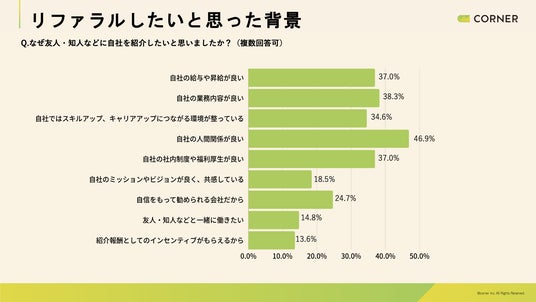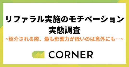 人事プロフェッショナルブティック「CORNER」を提供する株式会社コーナー(所在地:東京都渋谷区 代表取締役:門馬 貴裕、以下コーナー)は、「リファラル実施のモチベーション実態調査」を実施しましたので、結果をお知らせいたします。