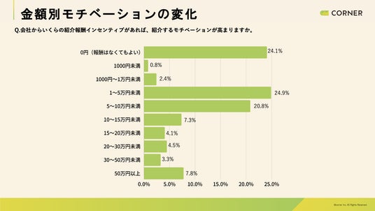 会社からいくらの報酬インセンティブがあれば、リファラルのモチベーションが高まりますか