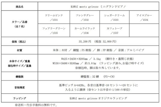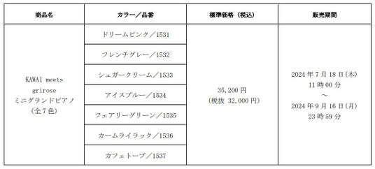 2024年1月~2月に実施した、カワイ直営店・grirose直営店での店舗展示や、コラボレーションミニピアノを抽選でプレゼントするSNSキャンペーンにて大変好評をいただいたため、このたび発売を決定いたしました。