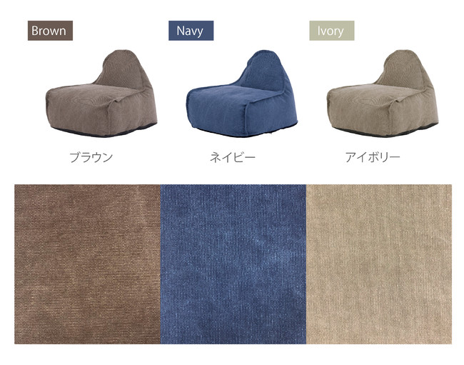 生地は、落ち着いた雰囲気でインテリアに合わせやすい色味のブラウン・ネイビー・アイボリーの3色を展開。