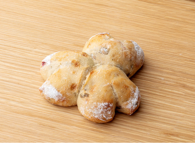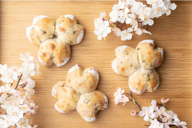 生地には桜の花と葉の塩漬けを刻んだものを混ぜこみ、桜が香る春を象徴するパンです。塩味とのバランスを考え、蜂蜜を加えて、もっちり感も演出し、食べやすくしました。桜を意識した可愛らしいフォルムで、食卓を彩ります。