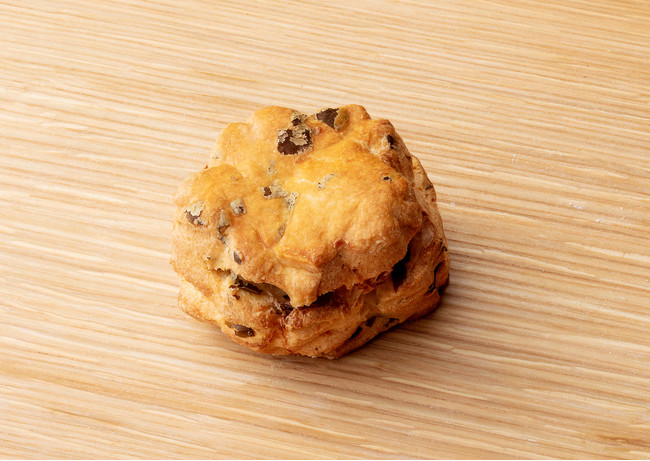 生クリームとたまごをたっぷり使ったスコーンです。桜の花と葉の塩漬けを生地に練り込み、桜の形に焼き上げました。トーストすると香ばしく、表面のサクサク感が増し、中身はしっとり。コーヒーにもぴったりです。