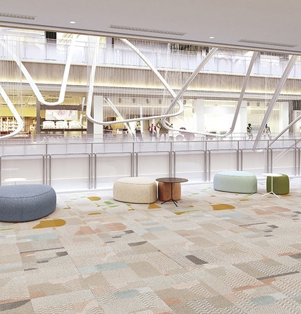 ツミキやオモチャをイメージした抽象的な柄で心躍る空間を演出。