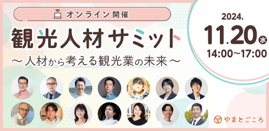 株式会社やまとごころ(本社:東京都新宿区、代表取締役:村山慶輔)と株式会社やまとごころキャリア(本社:東京都江東区、代表取締役社長:松島敏幸)が主催し、2024年11月20日(水)にオンライン開催が決定している「観光人材サミット ~人材から考える観光業の未来~」のプログラムと各セッションの登壇者が決定したことをお知らせいたします。