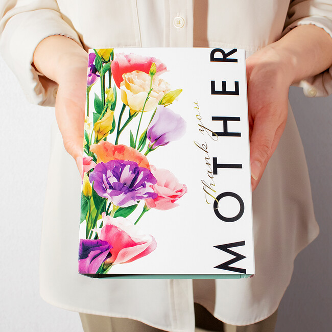 今年は、優美に咲き誇る花束と、きらりと光る「Thank you」の文字が印象的なフラワーボックスをご用意。箱を開けると「愛をこめて、幸せを願っています」というメッセージがお出迎え。彩りあふれる華やかなギフトボックスで、お母さんへ「ありがとう」の気持ちをお届けします。