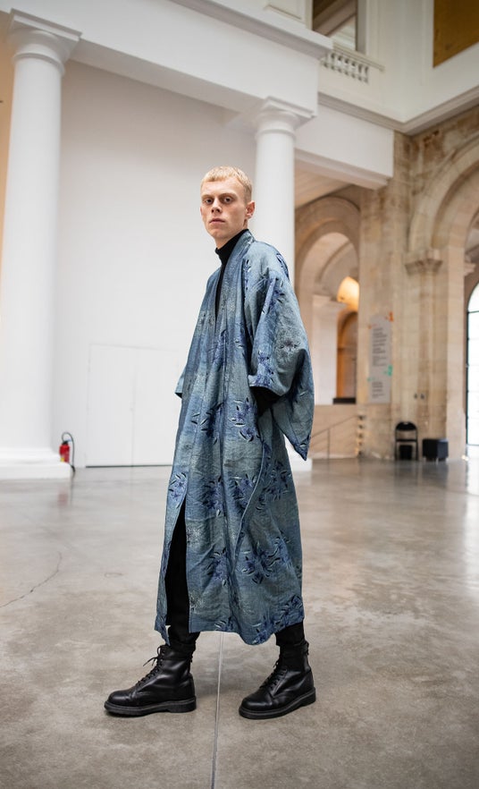 岡山産デニムやジャガード織で表現したジャガードデニムを用い従来の着物を、