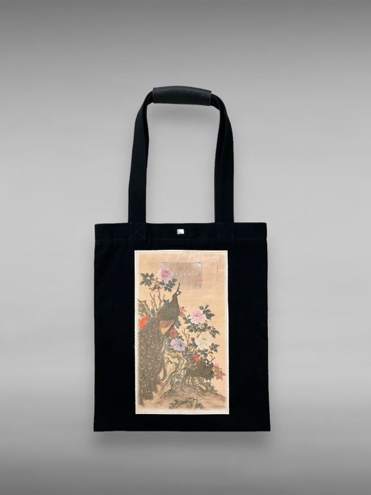岡山産デニムを使用し、レザーに日本絵画をプリントしたトートバッグや、