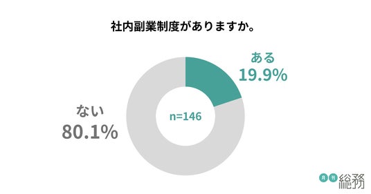社内副業制度があるか尋ねたところ、約2割があると回答しました(n=146)。