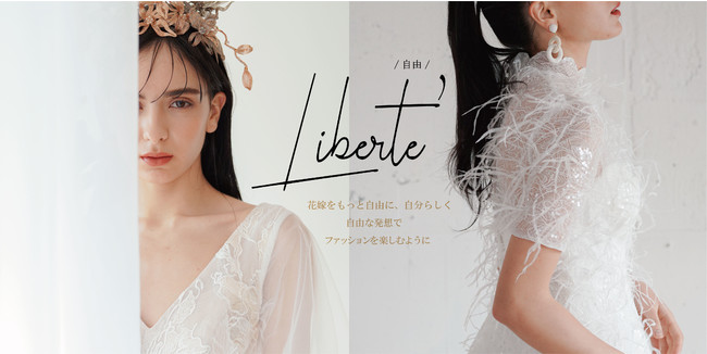 フランス語で“自由”を意味するその名のとおり、決まりきった型にはまることを好まず、もっと自由に輝きたいと願う花嫁さまの憧れを叶えるべく、最新のトレンドをふんだんにとりいれています。