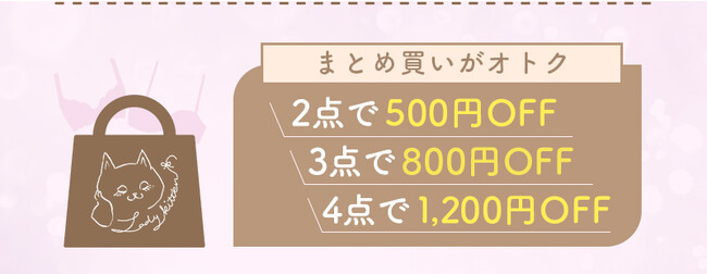 2点購入で500円OFF、3点購入で800OFF、4点購入で1,200円OFF