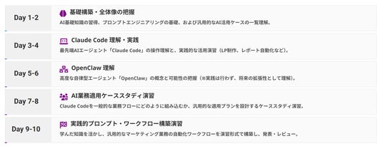 2. Claude Code・OpenClawを活用した、50~60時間の実務直結型カリキュラム