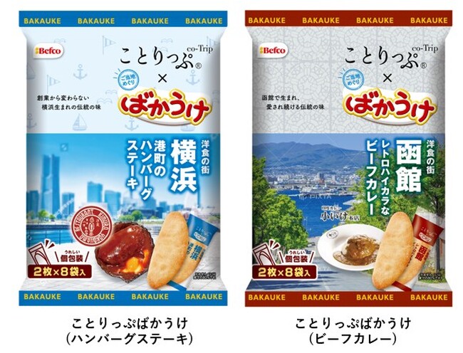 “ばかうけ”“星たべよ”“瀬戸しお”など米菓を製造販売する(株)栗山米菓(代表取締役社長:栗山敏昭 新潟市北区)は、株式会社昭文社(代表取締役 川村哲也 東京都千代田区)が発行する人気旅行ガイドブック「ことりっぷ」とコラボした商品「ことりっぷばかうけ(ハンバーグステーキ)」「ことりっぷばかうけ(ビーフカレー)」を期間限定で発売致します。2023年7月10日新発売(発売地区:全国)、NPP 220円前後。
