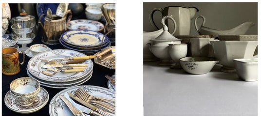 左:BROWN ANTIQUES(ヨーロッパアンティーク雑貨、欧米アクセサリー)※Happ.店内販売、右:ANONYME(フランスアンティーク家具・雑貨)左写真>当店はイギリス、フランスの家具・雑貨やアメリカ、ヨーロッパのヴィンテージアクセサリーを扱っております。作り手の気持ちが伝わってくるもの、時が経つことで良き風合いを醸し出しているもの。時間や国を越えて手にできることの喜びをお伝えしていきたいと思います。19世紀のイギリスのお皿や花器、ヴィンテージのアクセサリーを並べてHapp.でお待ちしております。また、Happ. カフェでは当店のアンティーク食器を使用した特別メニューも期間限定で登場する予定です。 この機会にぜひアンティークの品々をご堪能くださいませ。(Instagram:@brown_antiques)