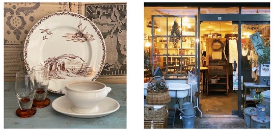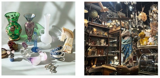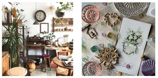 左:Imaginary Cajuen(ヴィンテージフラワーベース、インテリア雑貨)、右:JOGLAR(ヨーロッパアンティーク家具・雑貨)
